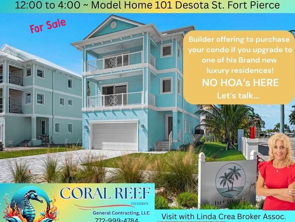 Coral Reef GC is building Top Knotch Luxury homes one block south of Archies! 4 story block homes with 5 terraces to ensure extrordinary views! Please click the link below and stop by the Model home at 101 Desota St in Fort Pierce today. Model is open 12:00 to 4:00. Click Subscribe below to be on my mailing list!